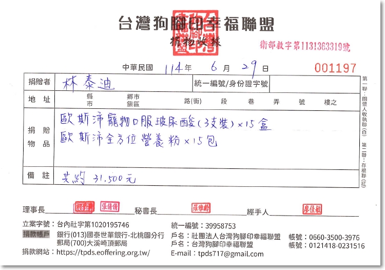 捐贈歐斯沛系列給狗腳印義賣2024.06.29
